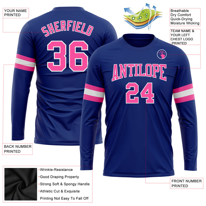 Custom Royal Pink-White Long Sleeve Performance T-Shirt