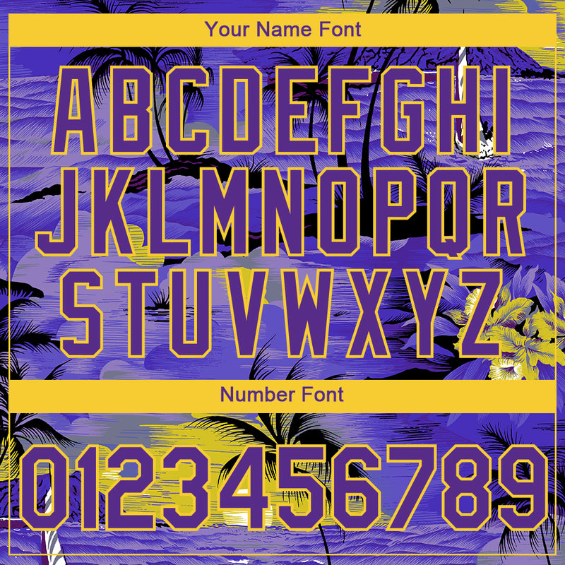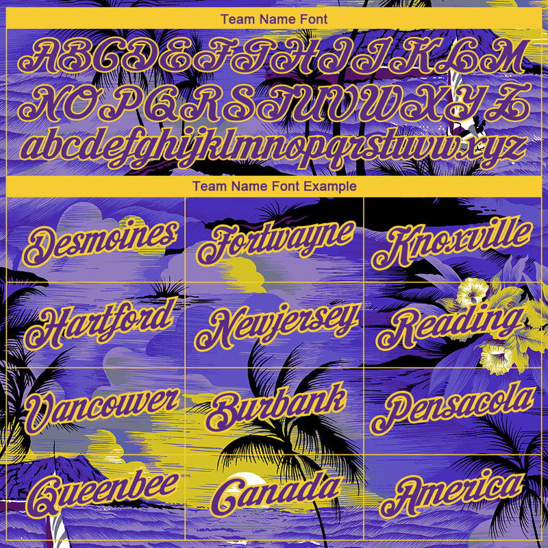 Custom Purple Yellow 3D Pattern Design Sun Beach Hawaii Palm Trees Performance T-Shirt