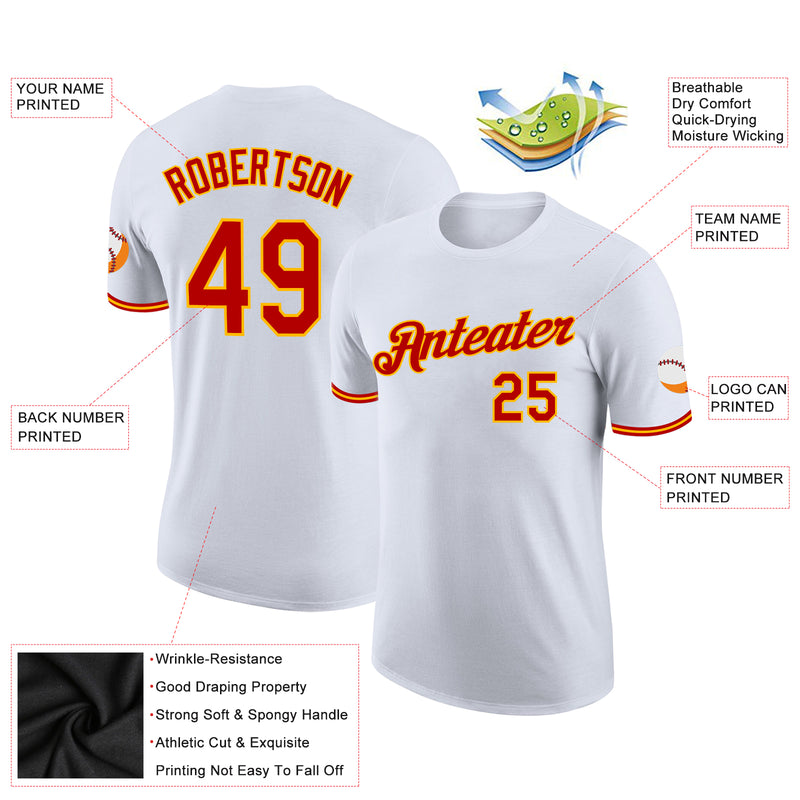 Custom White Red-Gold Performance T-Shirt