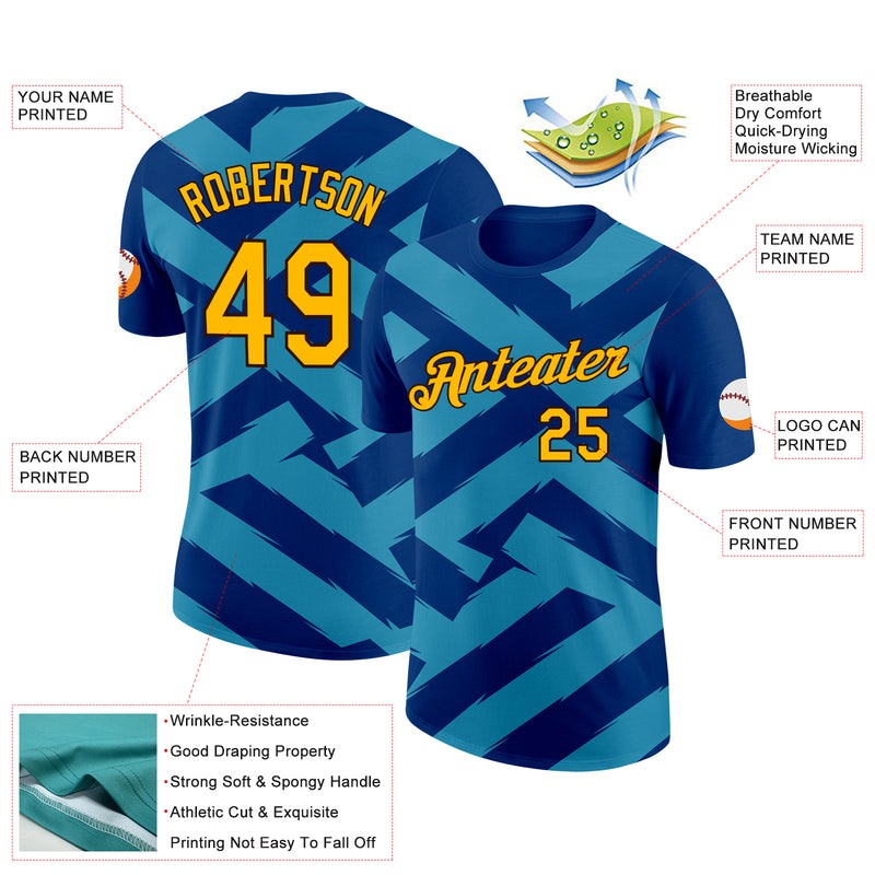 Custom US Navy Blue Gold Panther Blue-Brown 3D Esports Performance T-Shirt