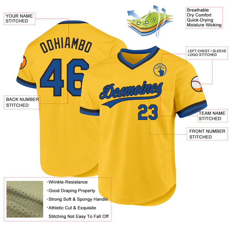 Custom Gold Blue-Black Authentic Throwback Baseball Jersey