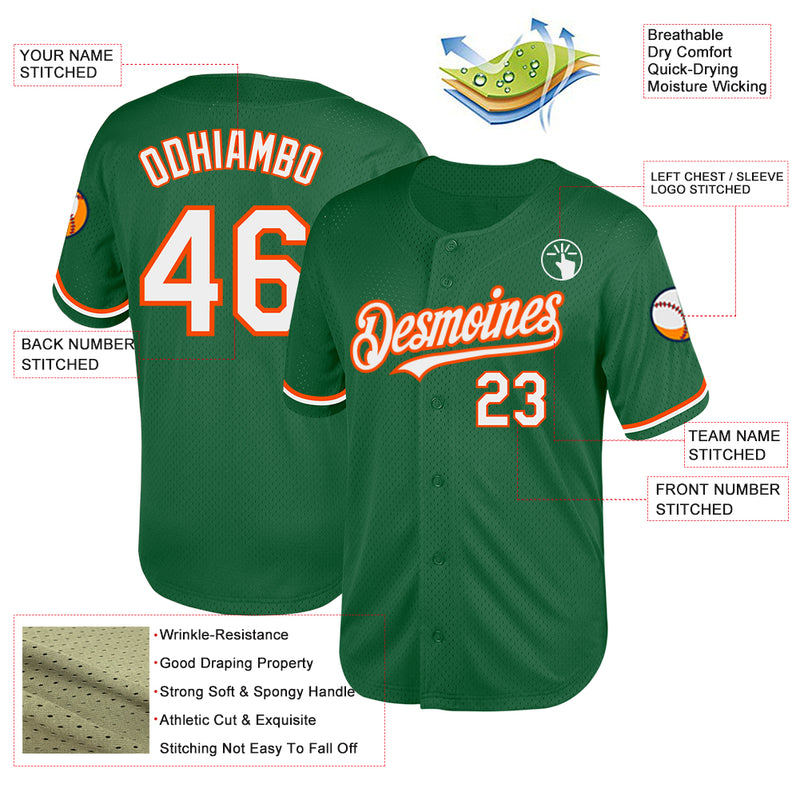 Custom Kelly Green White-Orange Mesh Authentic Throwback Baseball Jersey