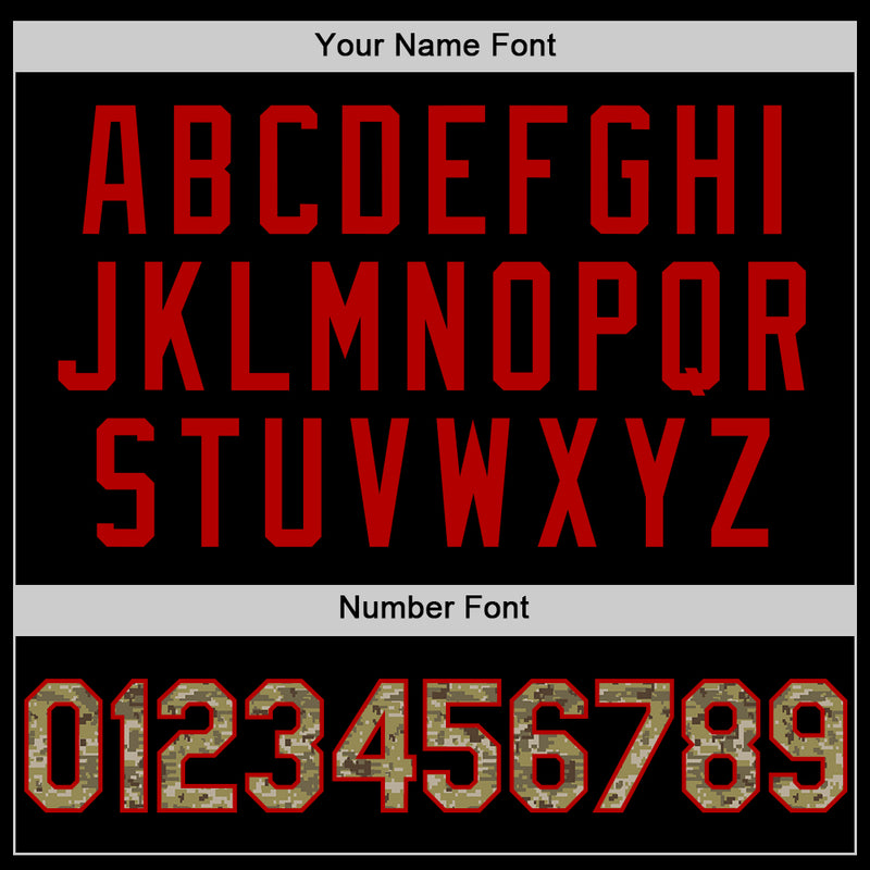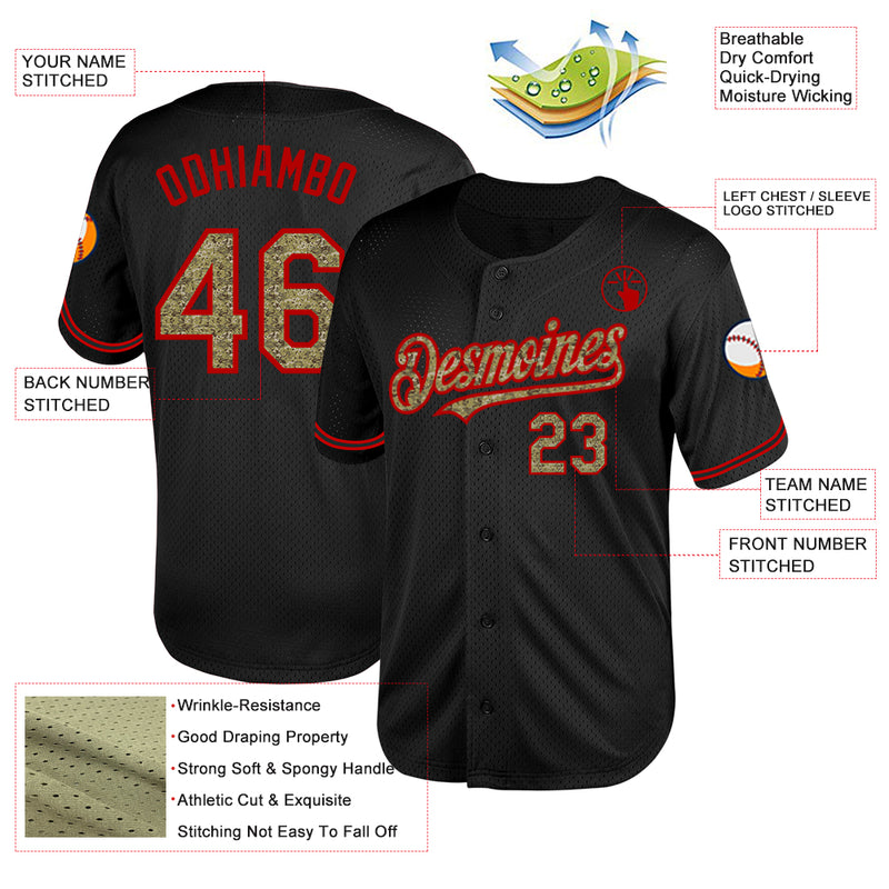 Custom Black Camo-Red Mesh Authentic Throwback Baseball Jersey