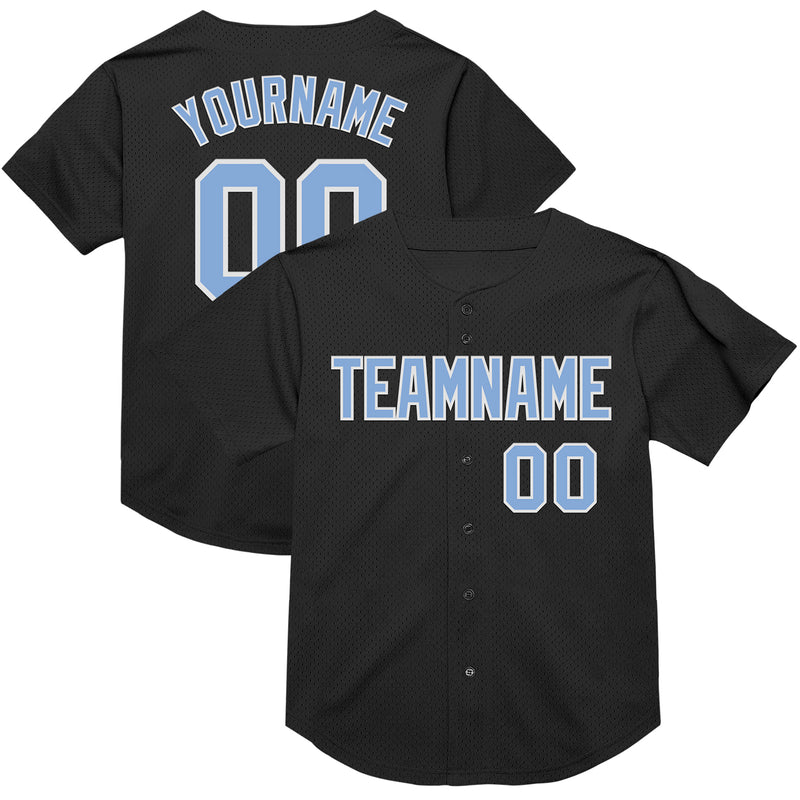 Custom Black Light Blue-White Mesh Authentic Throwback Baseball Jersey