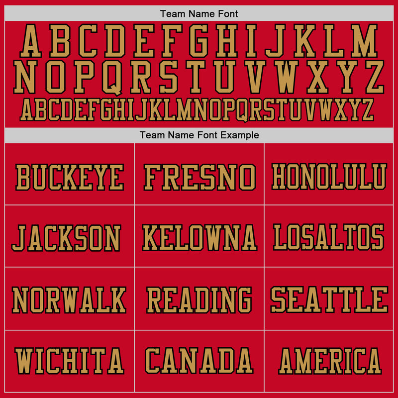 Custom Red Old Gold-Black Mesh Authentic Throwback Football Jersey