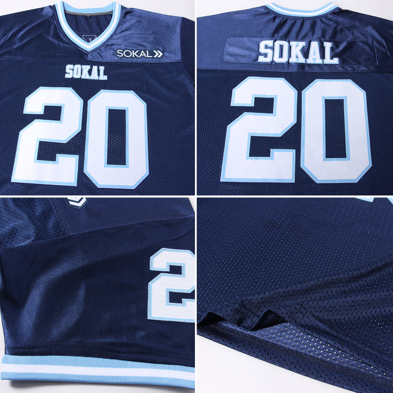 Custom Navy White-Light Blue Mesh Authentic Throwback Football Jersey