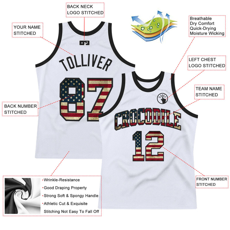 Custom White Vintage USA Flag-Black Authentic Throwback Basketball Jersey