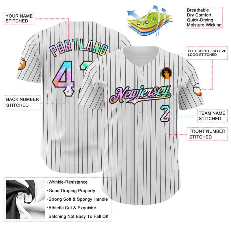 Custom White Black Pinstripe Tie Dye Authentic Baseball Jersey