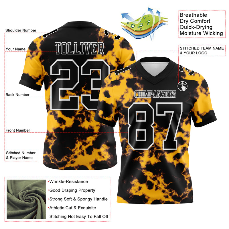 Our custom football jersey allows you to create your own design, adding your name, team logo, or any special graphics that represent your team spirit. Made from high-quality materials, it offers exceptional comfort and durability, ensuring you perform at your best in your custom uniform.
