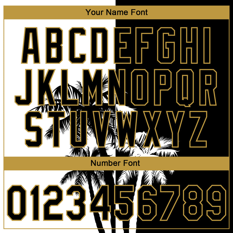 Custom Stitched Black White-Old Gold 3D Hawaii Coconut Trees Sports Pullover Sweatshirt Hoodie