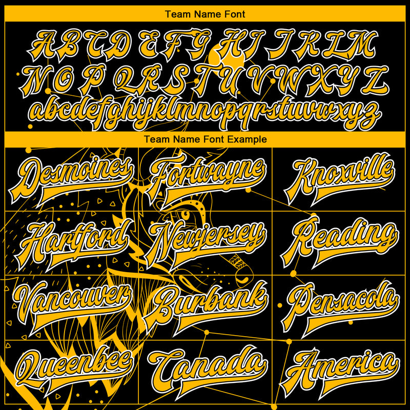 Custom Black Gold-White Wolf 3D Pattern Design Bomber Full-Snap Varsity Letterman Jacket
