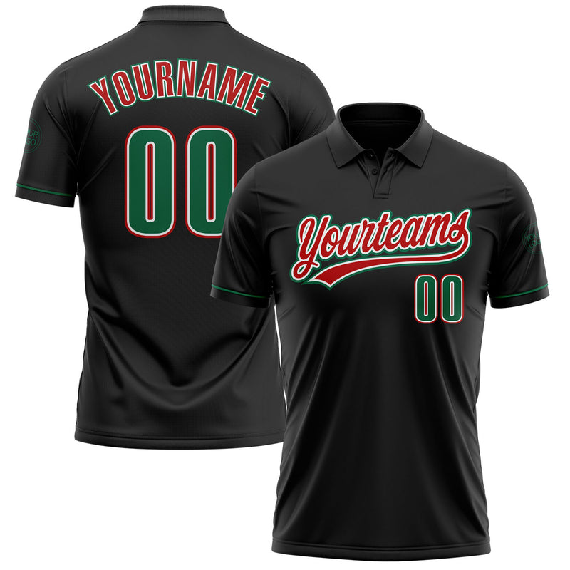 Custom Black Kelly Green-Red Performance Vapor Golf Polo Shirt
