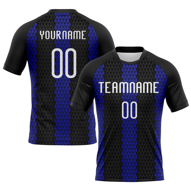Custom Black White-Royal Geometric Shape Sublimation Volleyball Uniform Jersey