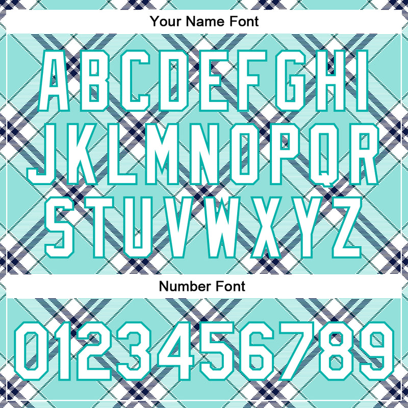 Custom Ice Blue Aqua-Navy Check Board 3D Pattern Design Bomber Full-Snap Varsity Letterman Jacket