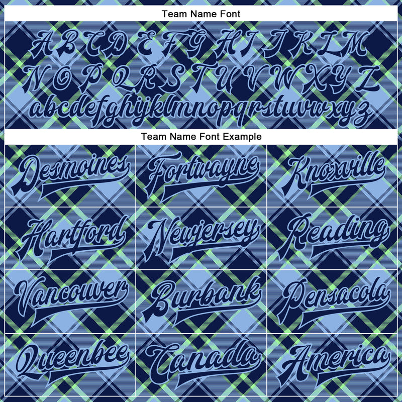 Custom Navy Light Blue-Neon Green Check Board 3D Pattern Design Bomber Full-Snap Varsity Letterman Jacket