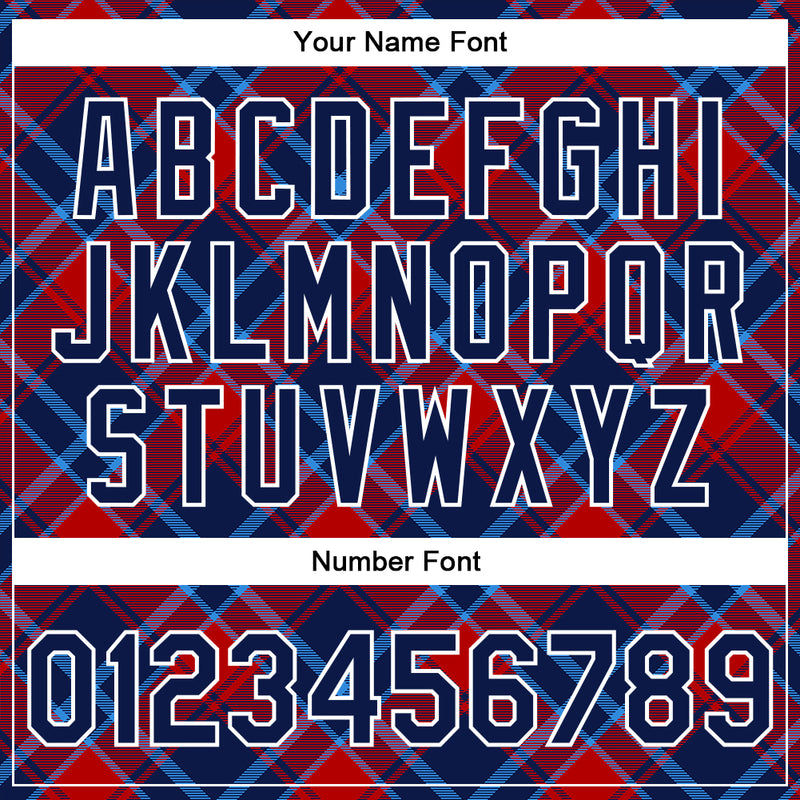 Custom Navy Red-Light Blue Check Board 3D Pattern Design Bomber Full-Snap Varsity Letterman Jacket