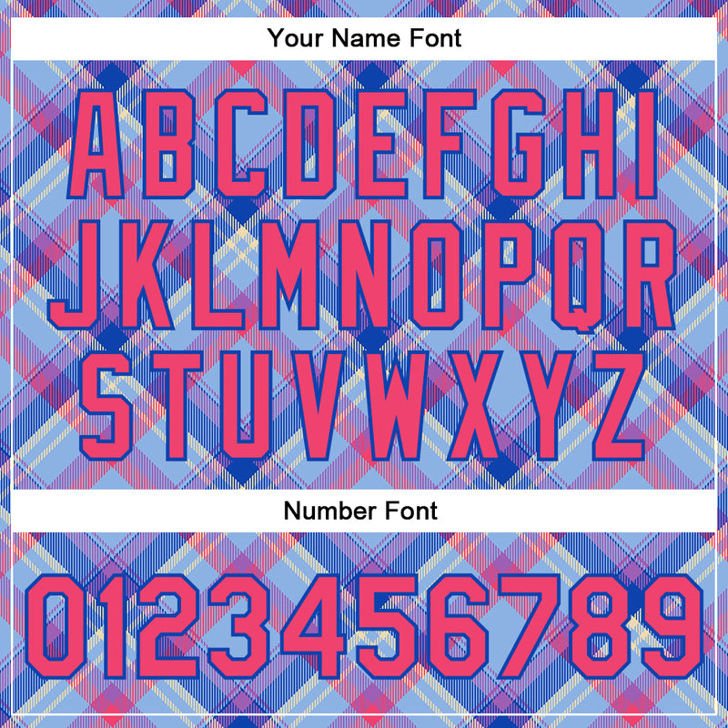 Custom Light Blue Neon Pink Thunder Blue-Cream Check Board 3D Pattern Design Bomber Full-Snap Varsity Letterman Jacket