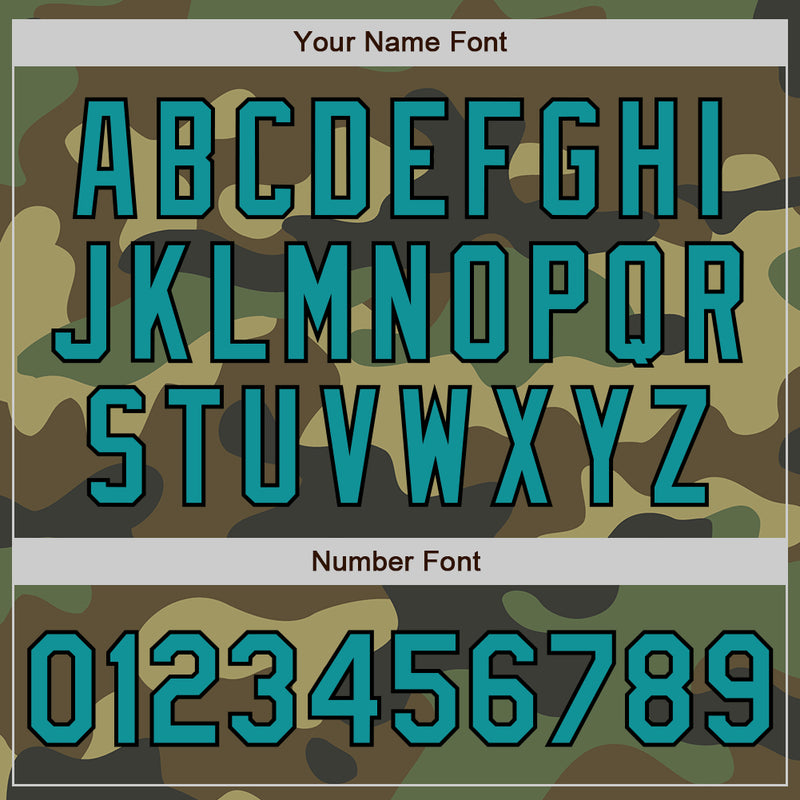 Custom Camo Teal-Black Bomber Full-Snap Varsity Letterman Salute To Service Jacket