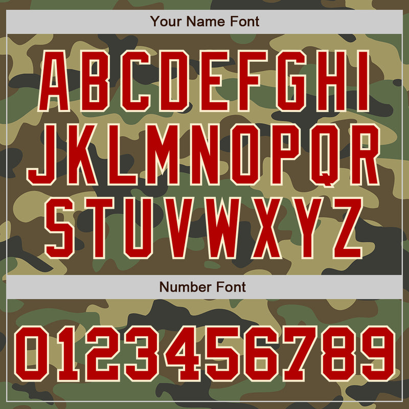 Custom Camo Red-Cream Bomber Full-Snap Varsity Letterman Salute To Service Jacket