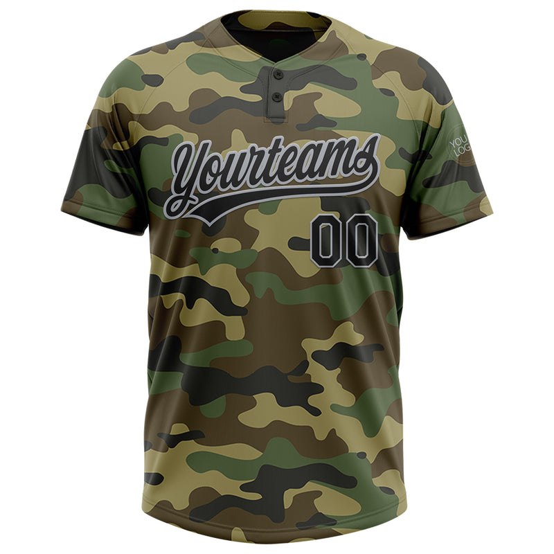 Custom Camo Black-Gray Salute To Service Two-Button Unisex Softball Jersey