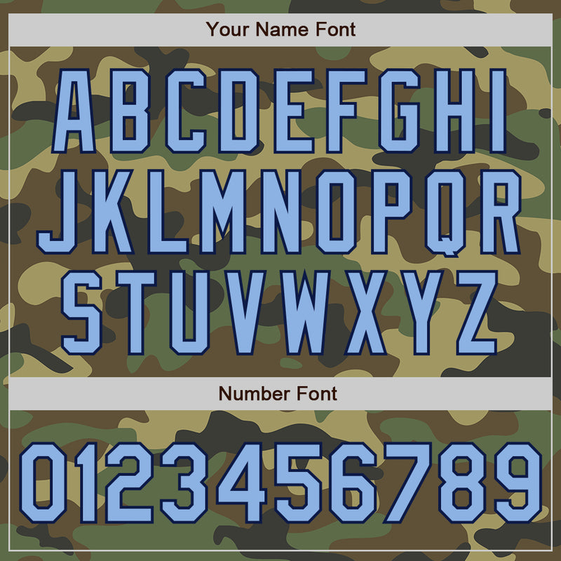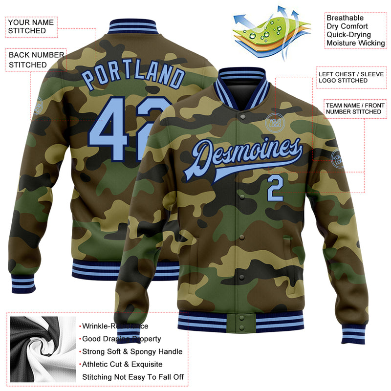 Custom Camo Light Blue-Navy Bomber Full-Snap Varsity Letterman Salute To Service Jacket