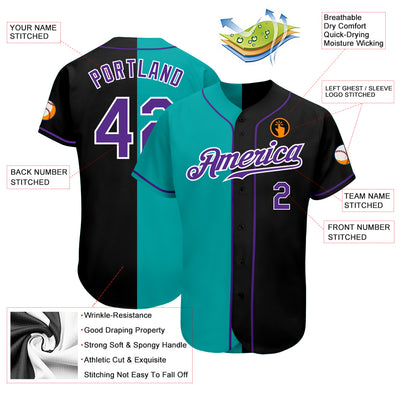 Custom Black Purple-Aqua Authentic Split Fashion Baseball Jersey