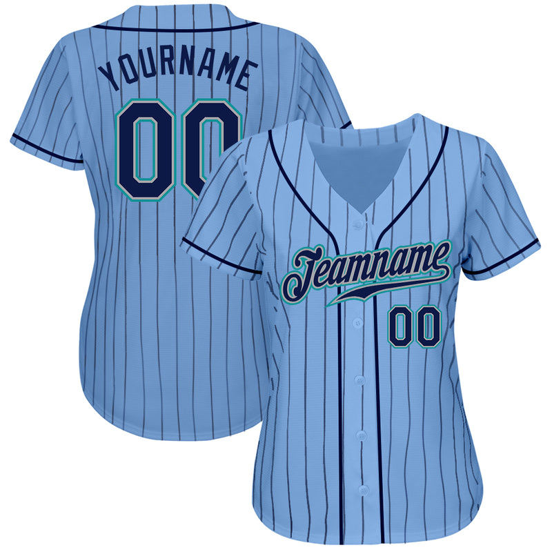 Custom Light Blue Navy Pinstripe Navy-Teal Authentic Baseball Jersey