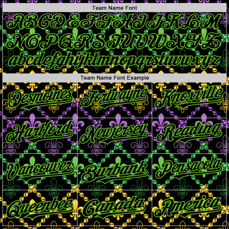 Custom Black Aurora Green 3D Pattern Design Mardi Gras Shrove Tuesday Authentic Baseball Jersey
