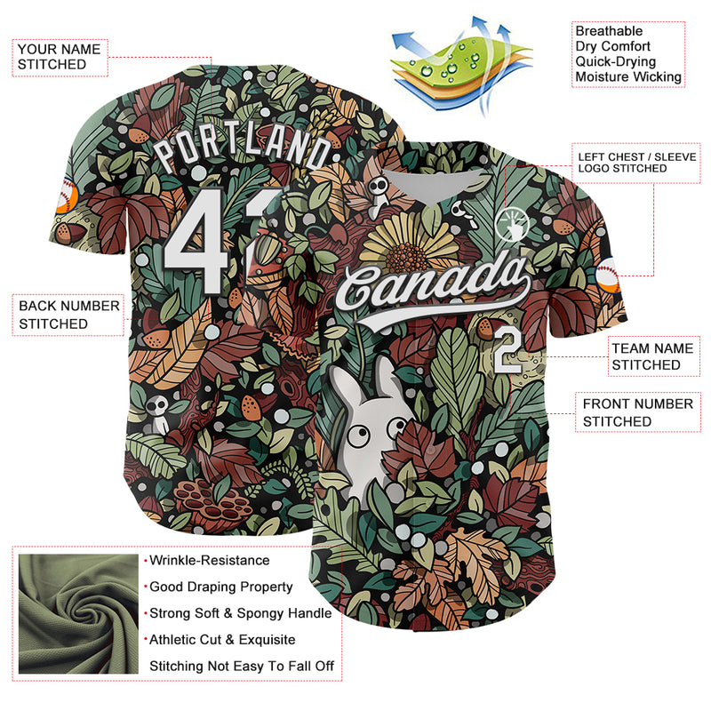 Custom Black White 3D Syntetyc Chibi Leaves Authentic Baseball Jersey