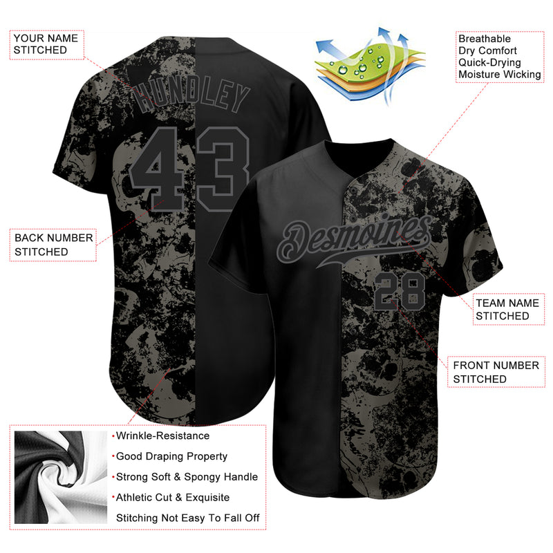 Custom Black Steel Gray 3D Skull Fashion Authentic Baseball Jersey