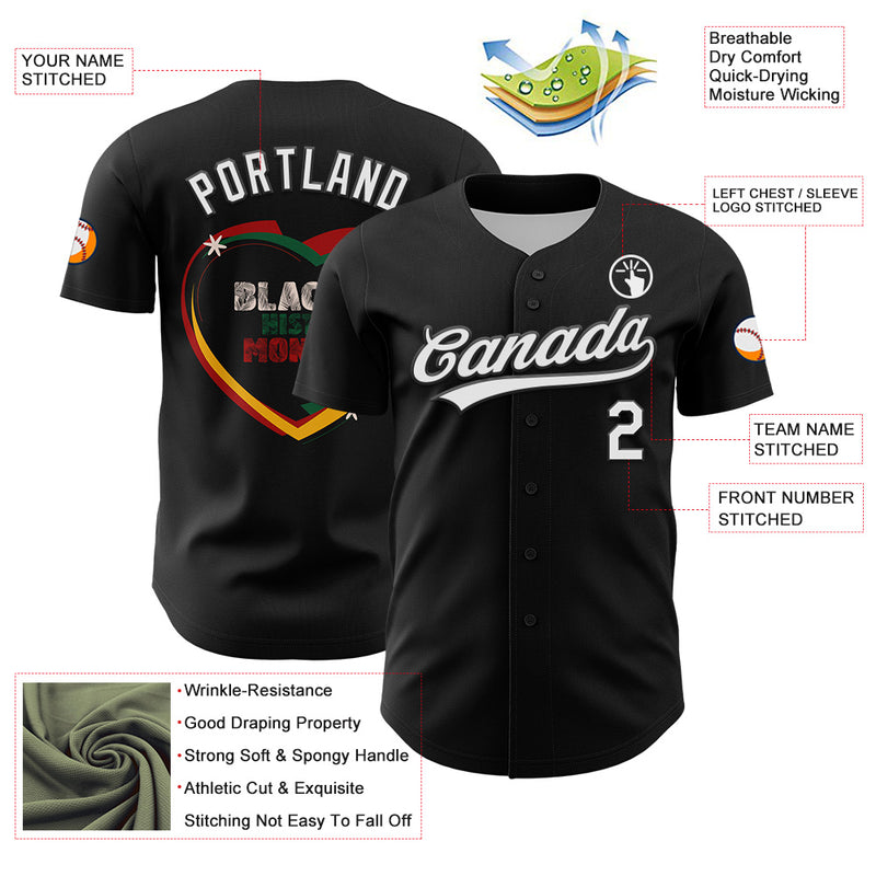 Custom Black White 3D Pattern Design Black History Month Authentic Baseball Jersey