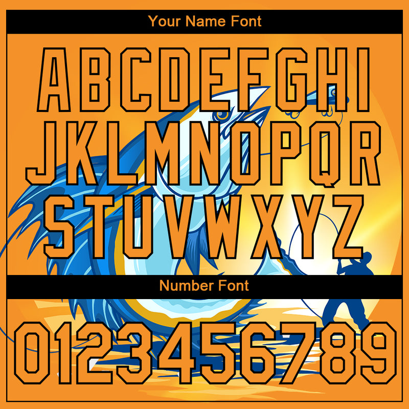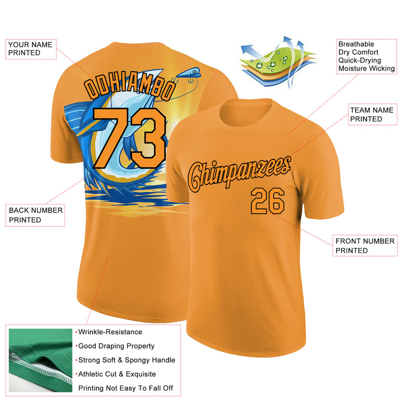Custom Bay Orange Black 3D Pattern Design Fishing Fish Hook Performance T-Shirt