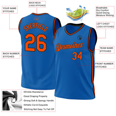 Custom Blue Orange-Black Authentic Throwback Basketball Jersey