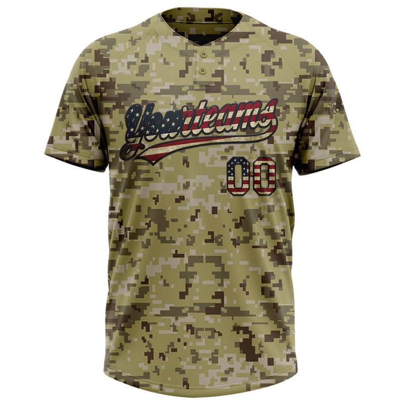 Custom Camo Vintage USA Flag-Black Salute To Service Two-Button Unisex Softball Jersey