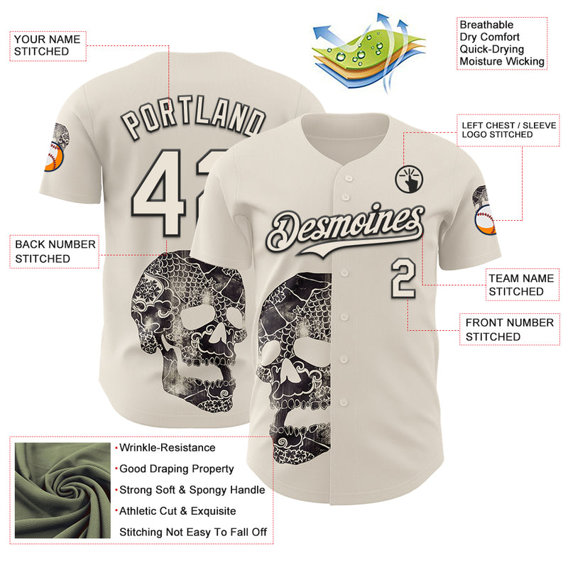 Custom Cream Cream-Black 3D Tobe Fonseca Ancestors Skull Authentic Baseball Jersey