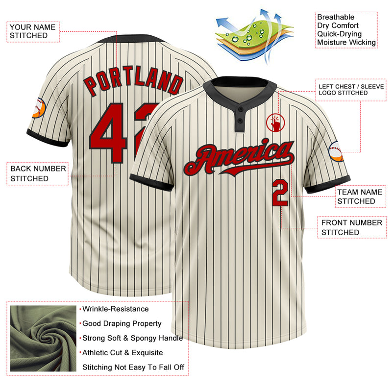Custom Cream Black Pinstripe Red Two-Button Unisex Softball Jersey