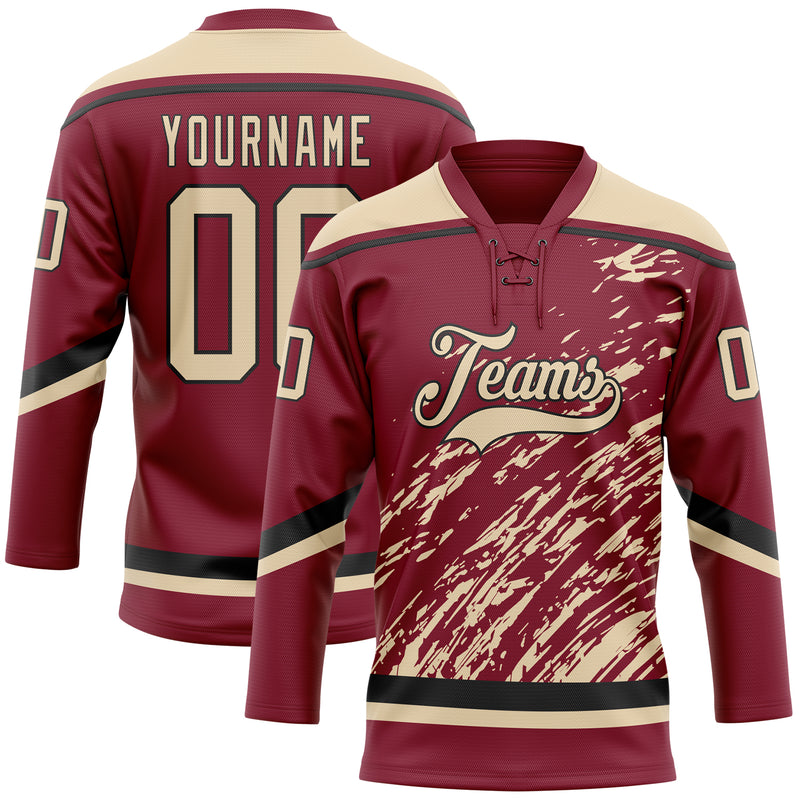 Custom Crimson City Cream-Black 3D Splash Art Hockey Lace Neck Jersey