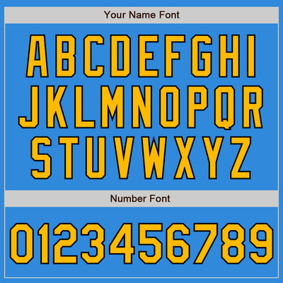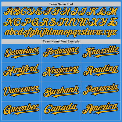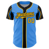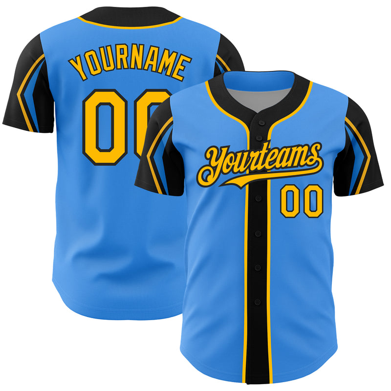 Custom Electric Blue Gold-Black 3 Colors Arm Shapes Authentic Baseball Jersey