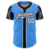 Custom Electric Blue White-Black 3 Colors Arm Shapes Authentic Baseball Jersey