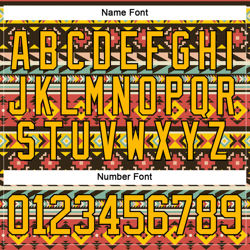 Custom Gold Black 3D Pattern Native Americans Tribal Indigenous People Hockey Lace Neck Jersey