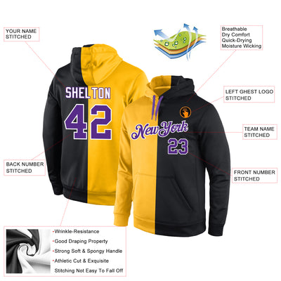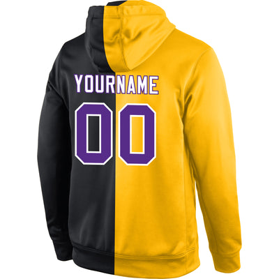 Custom Stitched Gold Purple-Black Split Fashion Sports Pullover Sweatshirt Hoodie