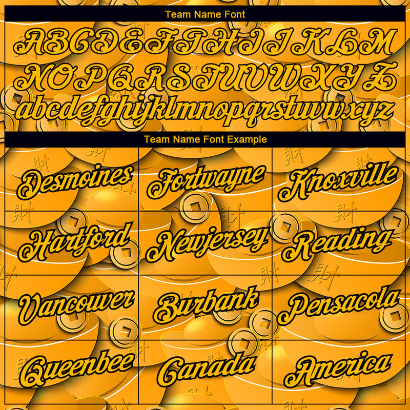 Custom Gold Black 3D Pattern Design Gold Ingot Money Theme Performance T-Shirt