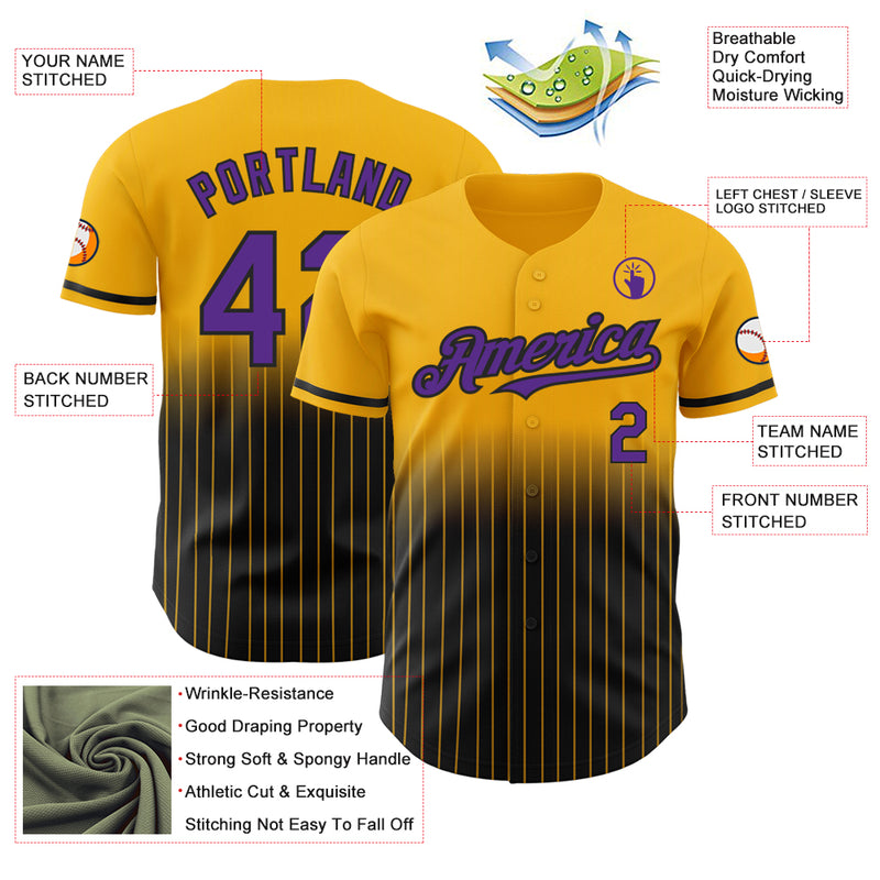 Custom Gold Pinstripe Purple-Black Authentic Fade Fashion Baseball Jersey