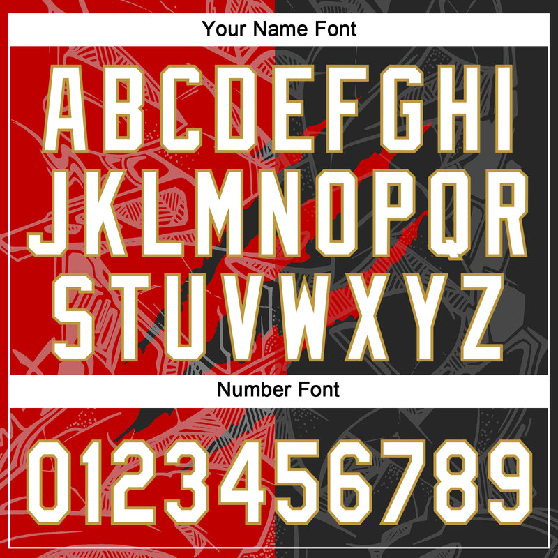 Custom Graffiti Pattern Black Red-Old Gold 3D Two-Button Unisex Softball Jersey