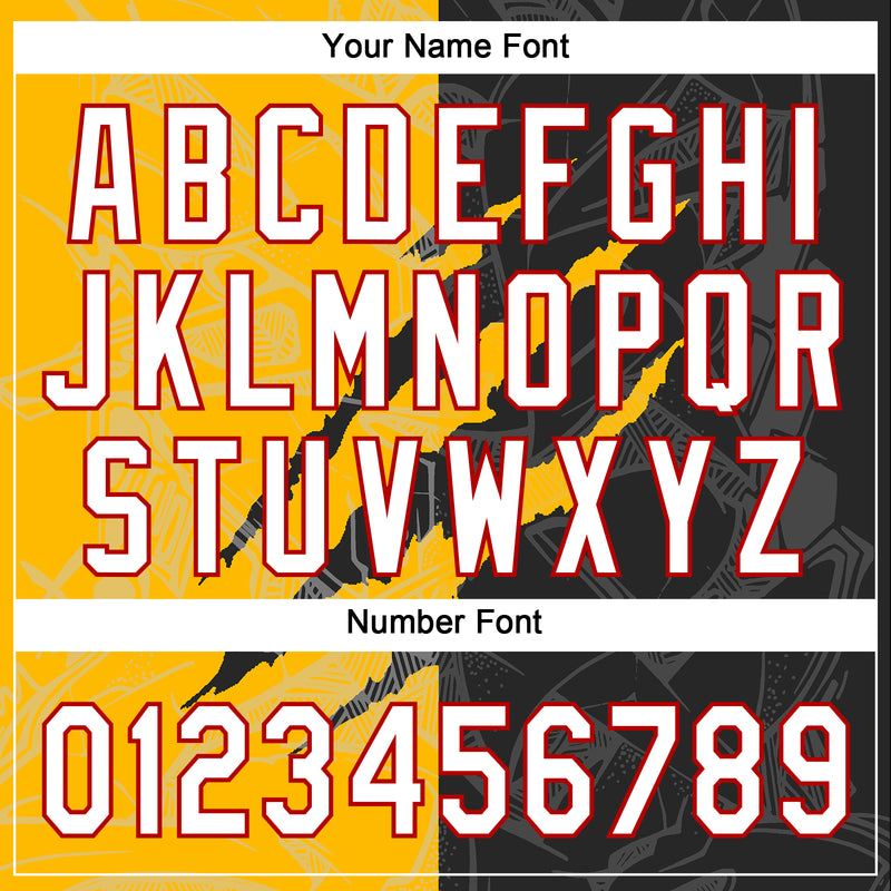 Custom Graffiti Pattern Black Gold-Red 3D Two-Button Unisex Softball Jersey