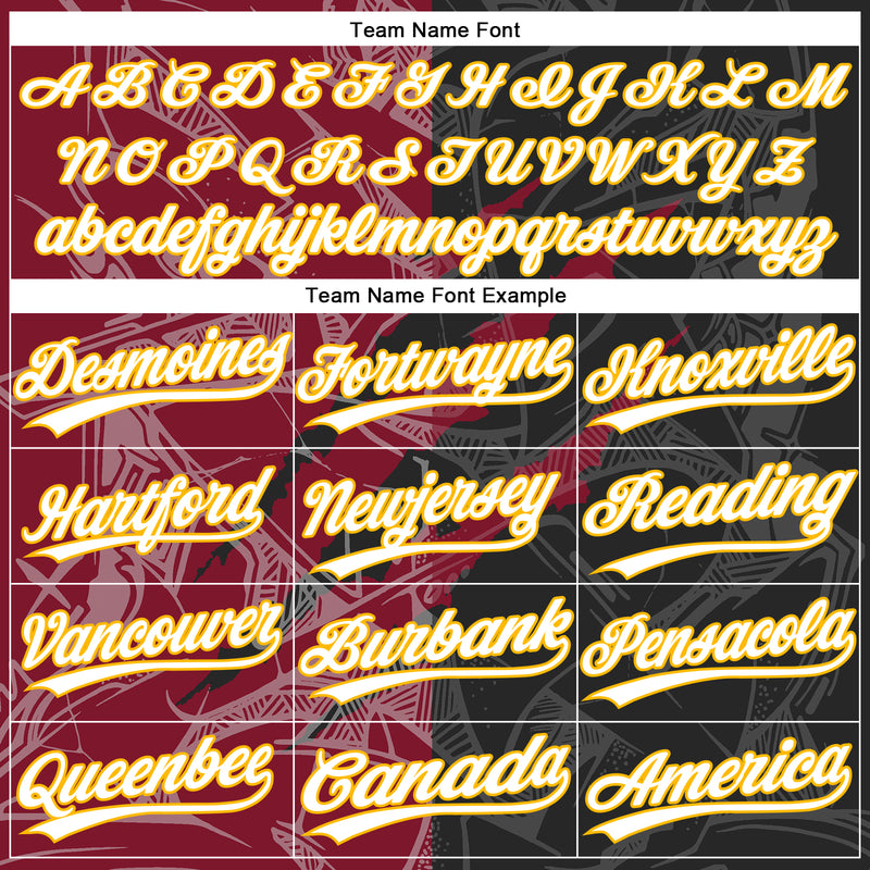 Custom Graffiti Pattern Black Crimson-Gold 3D Two-Button Unisex Softball Jersey