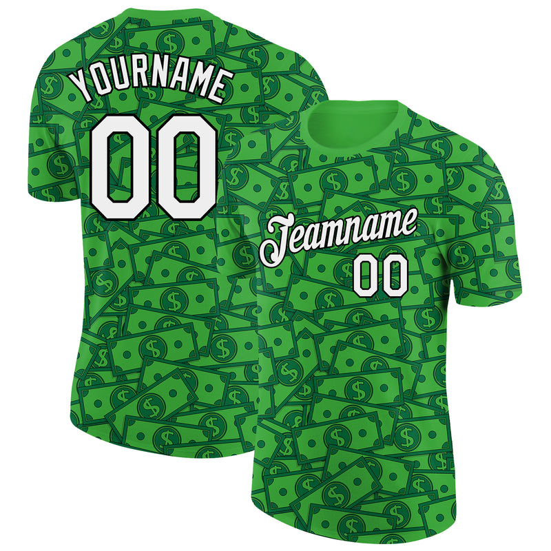 Custom Grass Green White-Black 3D Pattern Design Dollar Sign Money Theme Performance T-Shirt