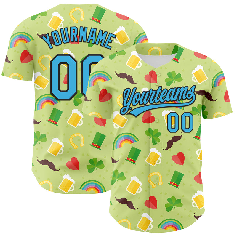 Custom Green Sky Blue-Black 3D St. Patrick's Day Shamrock Beer Authentic Baseball Jersey