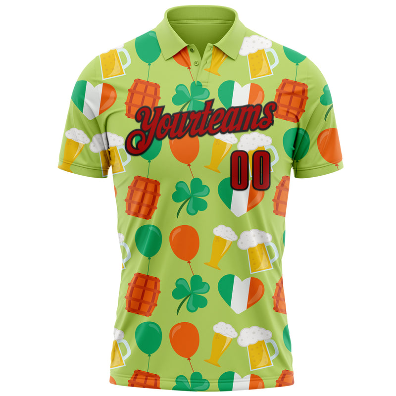 Custom Green Red-Black 3D St. Patrick's Day Shamrock Beer Performance Polo Shirt