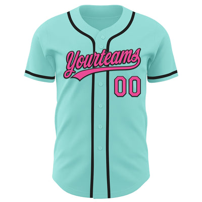 Custom Ice Blue Pink-Black Authentic Baseball Jersey